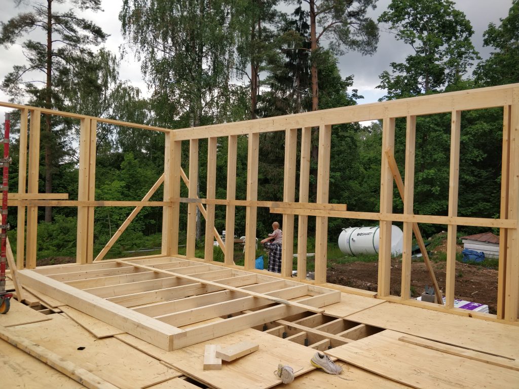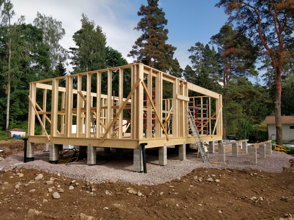 Lyhyesti: Perustukset saatiin tehtyä (kuukauden-pari myöhässä), puutavaran hinta on räjähtänyt käsiin ja saatavuus heikkoa, allekirjoittanut jäi loppuvuodeksi vuosilomille ja jatkaa siitä suoraan isyys- ja vanhempainvapaalle. Koko kesä- heinäkuun vallinnut järkyttävä helle. Rakennuksen alakerran runko pystyssä. Pidempi versio: