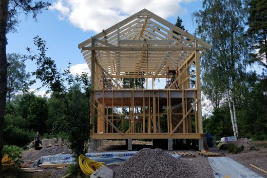 Lyhyesti: Perustukset saatiin tehtyä (kuukauden-pari myöhässä), puutavaran hinta on räjähtänyt käsiin ja saatavuus heikkoa, allekirjoittanut jäi loppuvuodeksi vuosilomille ja jatkaa siitä suoraan isyys- ja vanhempainvapaalle. Koko kesä- heinäkuun vallinnut järkyttävä helle. Rakennuksen alakerran runko pystyssä. Pidempi versio: