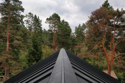Loppuviikosta timpurit siirtyivät ulkoverhouksen pariin. Haasteita tuotti räystäslaudoitus. Kattoa asentaessa tajuttiin, että ei laiteta paneelia kattotuolien yläpuolelle (eli avoräystäs), vaan ratkaistaan ongelma myöhemmin. Tämä lähinnä siksi, että kyseinen paneeli olisi maksanut n. 2000 euroa tämän hetkisillä puutavaran hinnoilla. Nyt kun tuo kyseinen ongelma oli tullut ratkaistavaksi, se olikin kinkkisempi kuin ajattelimme. Mikäli tekisimme avoräystään, tulee jokainen lauta sahata vinoon ja askarrella oikeaan muotoon poikosten väliin. Mikäli taas tekisimme umpiräystään, nurkkajiirit tuottavat ongelmia. Jälleen kerran päätimme siirtää ongelman tulevaisuuteen ja jättää räystään aluslaudoitukset kokonaan pois. Eli tällä hetkellä räystään alta pilkottaa kaunis muovinen aluskate.