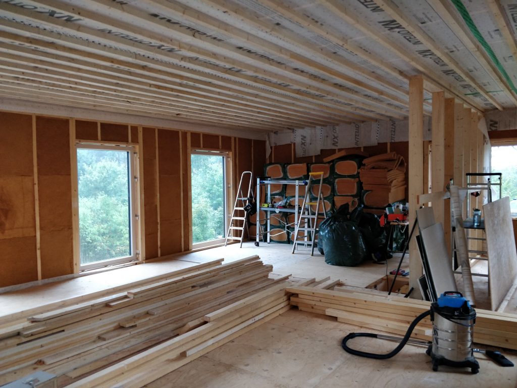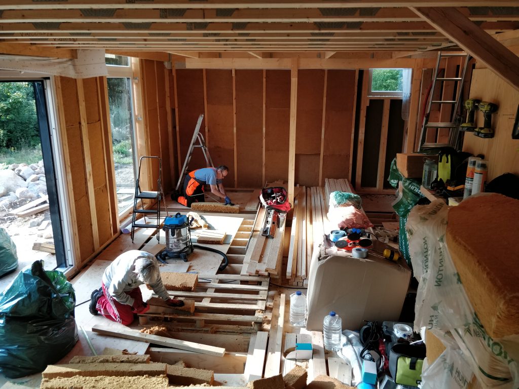 Eristystyö sujui suhteellisen nopsaan. Me pyörimme Tuukan kanssa alapohjan kimpussa, ja Tapani ja Eija jatkoivat alakerran eristämistä. Loppuviikosta siirryttiin yläkertaan ja ripeä tahti jatkui. Eli kiitos avusta, saatiin viikossa paljon aikaiseksi!
