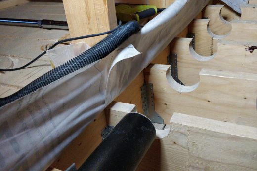 Keskiviikkona piti laittaa keittiön viemäri paikalleen, jotta saadaan keittiön lattiakin umpeen. Väsäsin viemärin itse, mutta tulin siihen tulokseen ettei minusta kyllä saa putkaria pitkällä tikullakaan. Sen verran nyhräämistä oli koko touhu.