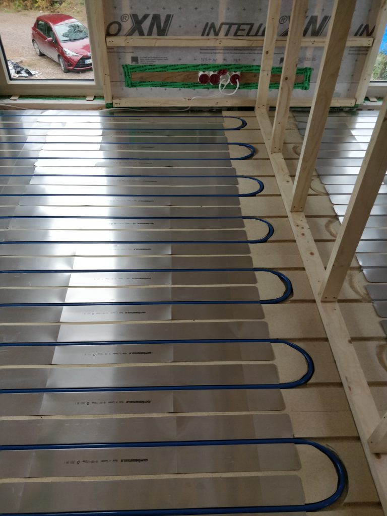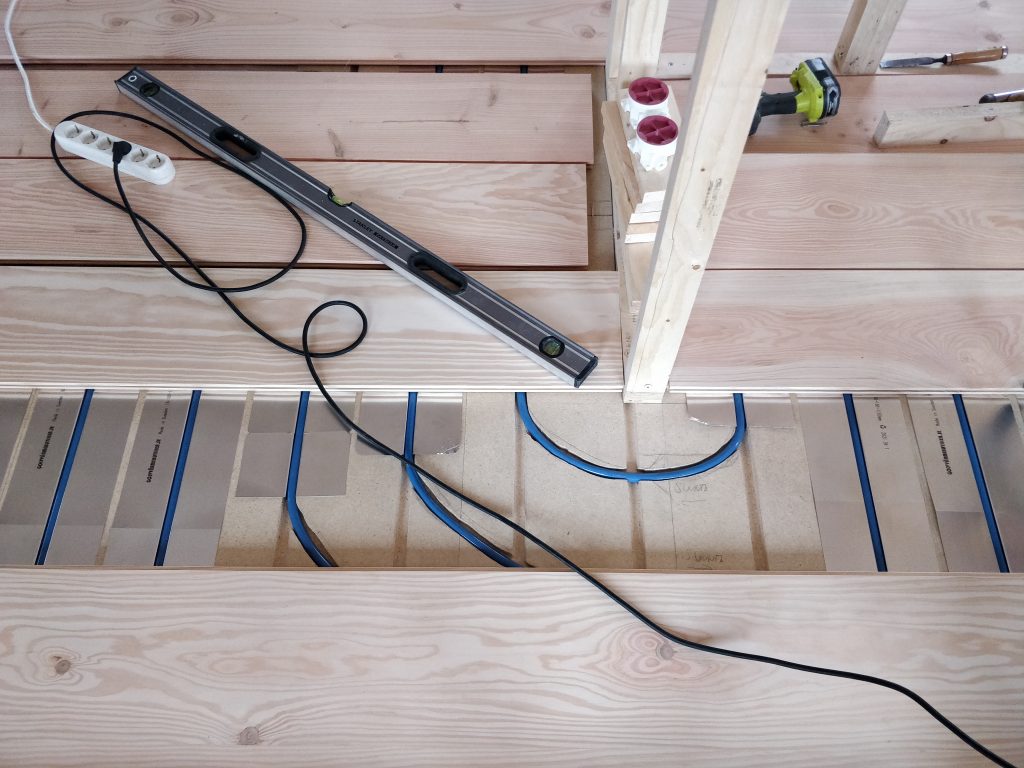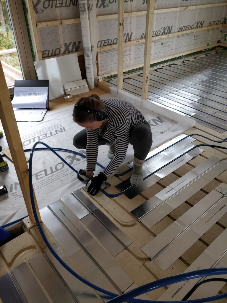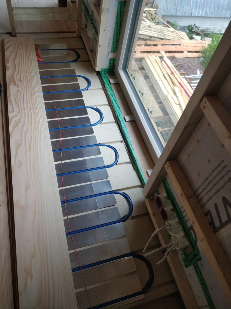 Olin itse poissa tiistain “virkistymässä” Mustion linnassa, ja sillä aikaa Tuukka ja Heidi olivat jyrsineet lattialevyihin käännökset ja laittaneet alumiiniset lämmönluovutuslevyt paikalleen.